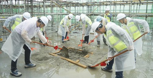 數(shù)月奮斗,翹首今日,出席人員手握系有紅綢的鐵鍬,將最后一方混凝土澆筑到位。放眼望去,建筑立面水泥基層展現(xiàn)眼前,主結構巍然矗立,渾然一體,混凝土澆筑縝密細致,每個細節(jié)都凝結著BOTH人的心血與汗水,無處不體現(xiàn)BOTH精益求精的品質(zhì)。