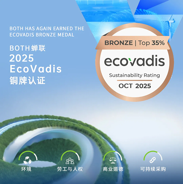 BOTH 蟬聯(lián) EcoVadis 銅牌認(rèn)證,整體表現(xiàn)躋身全球參評(píng)企業(yè)前18%