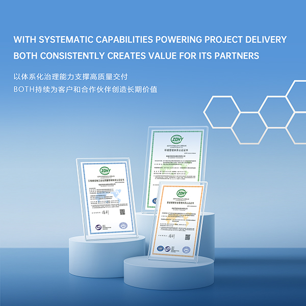 2025年,BOTH順利經(jīng)復審再次通過 ISO 9001質(zhì)量管理體系、ISO 14001環(huán)境管理體系及ISO 45001職業(yè)健康安全管理體系認證,標志著公司在質(zhì)量管理、環(huán)境責任與職業(yè)健康安全領(lǐng)域已構(gòu)建起全面協(xié)同的體系化治理框架,為項目高效高質(zhì)量交付提供了系統(tǒng)支撐。
